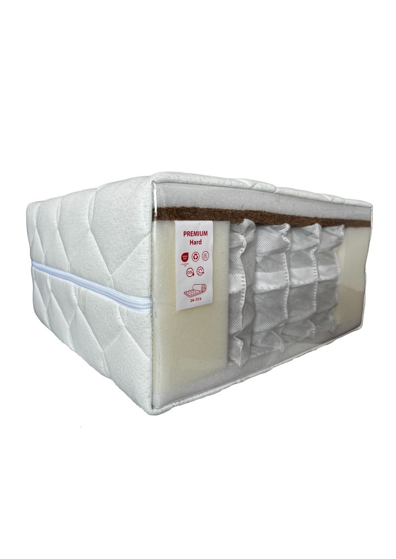 PREMIUM Hard – 19 cm aukščio dvipusis čiužinys su Pocket spyruoklėmis ir kokoso sluoksniu, skirtas tiems, kurie ieško standumo, patvarumo ir optimalios atramos stuburui.