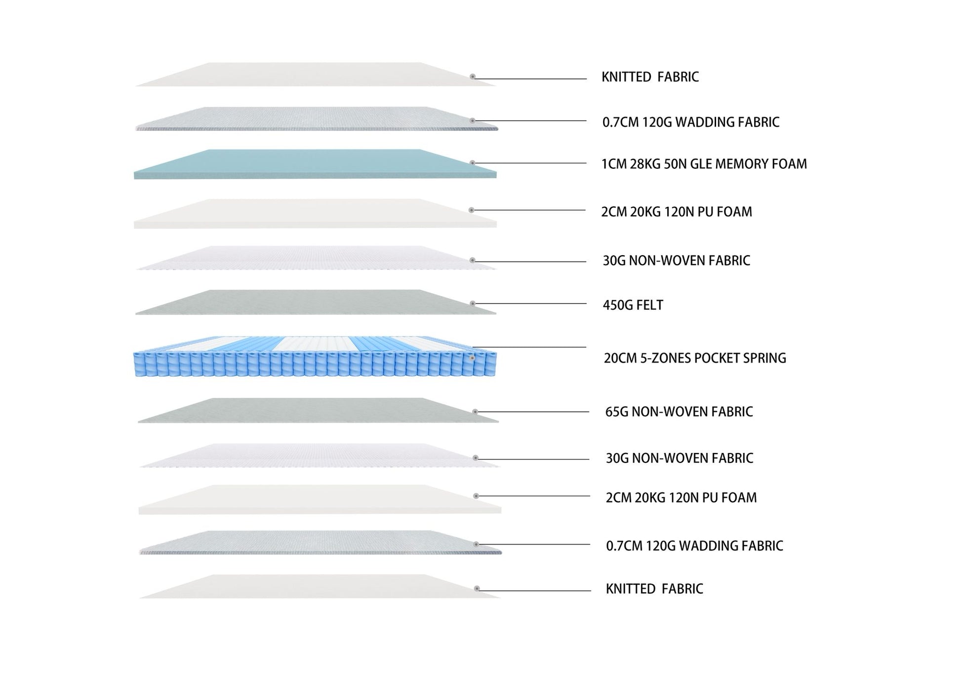 ✔ Nepriklausomos Pocket spyruoklės (20 cm) – idealiai prisitaiko prie kūno formų, suteikia ergonomišką atramą ir sumažina judesių perdavimą partneriui.